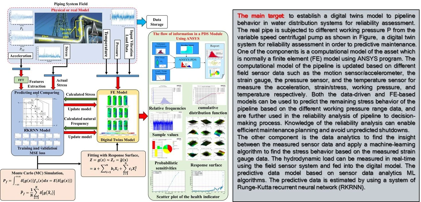 A digital twin of the pipeline, reflecting quantified uncertainties, is created for real-time evaluations, predicting water absorption effects on pipe properties, facilitating damage identification, and promoting infrastructure resilience through stakeholder-informed decisions.