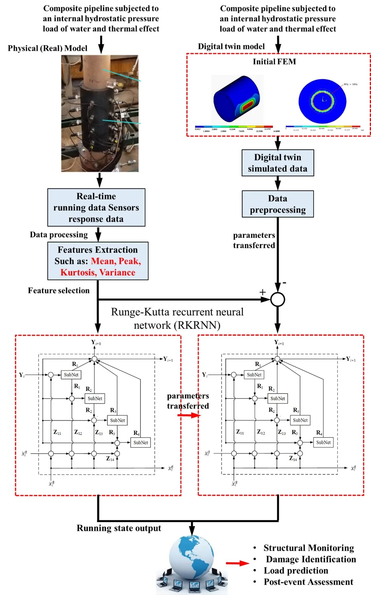 Digital Twin Modeling of Composite pipeline structure health state through the Runge-Kutta neural network (RKNN) and Finite Element Models